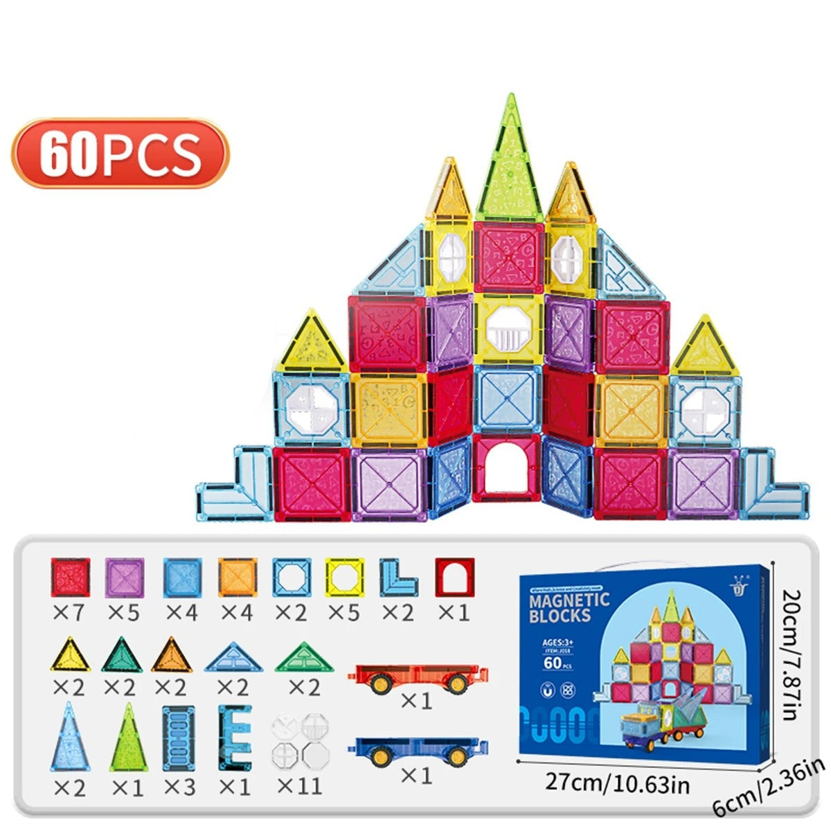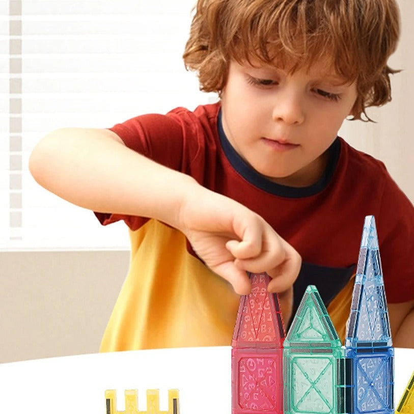 משחק האריחים המגנטיים מאפשר לילדים לבנות, לפרק ולהמציא עולמות שלמים,